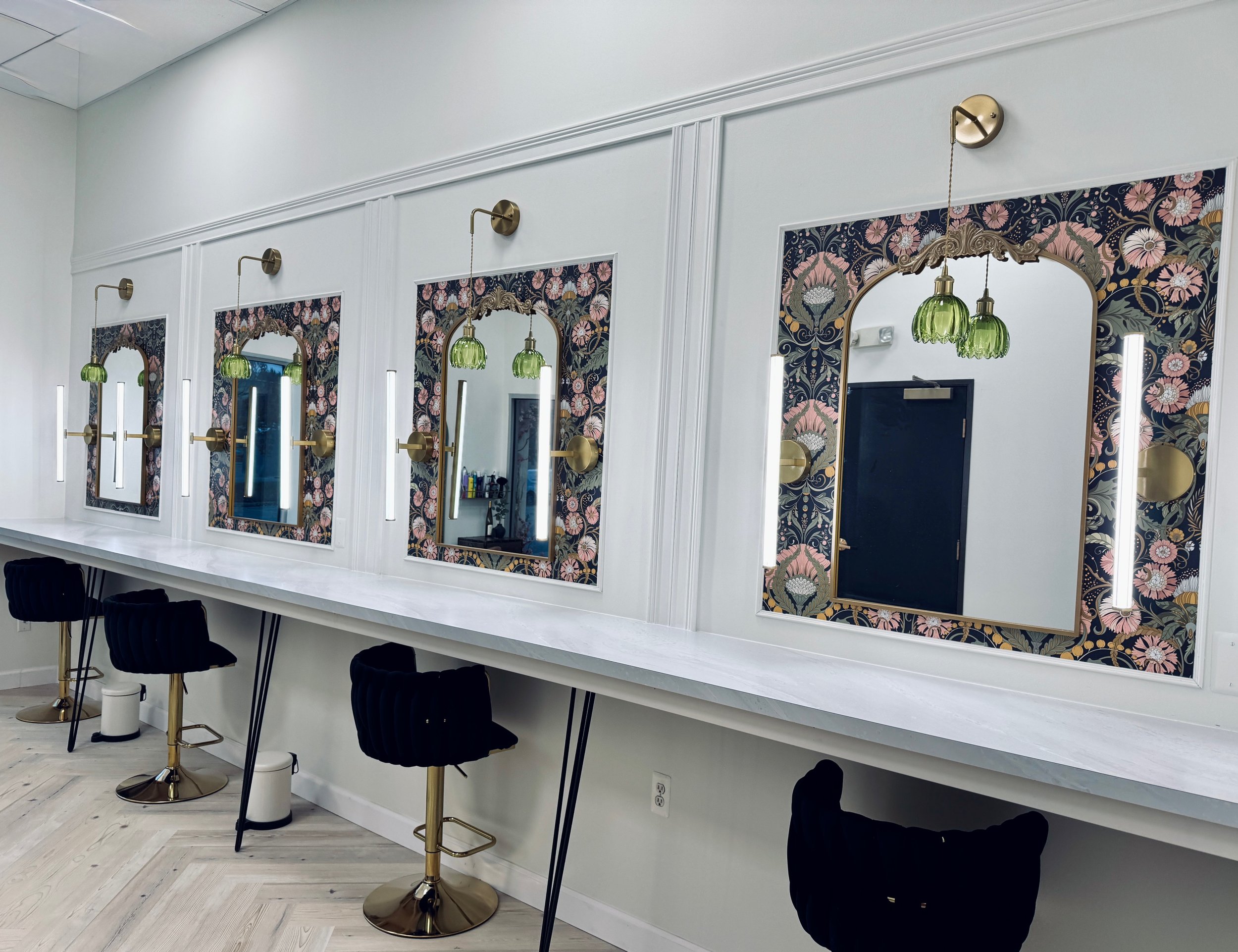 It features a lounge area, changing room, surround sound system, light/mirror makeup & hair station, 8 ft. rustic wood bar, extensions cords, WiFi, mini fridge, professional photography, professional lights, stand up steamer, microwave, champagne bucket, Keurig coffee maker, plenty of free parking, paper backdrops (seamless available for purchase at check out).